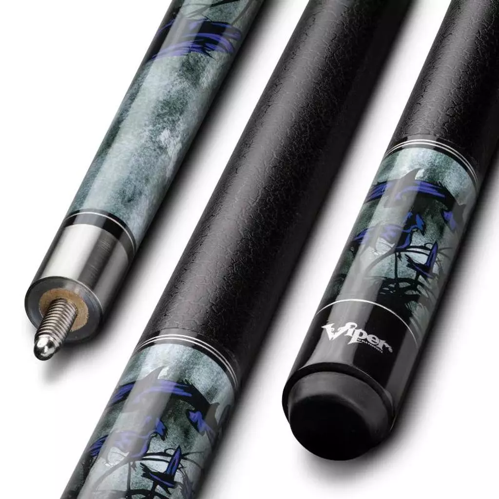 A mix between edgy tattoo style graphics and a quality 58" 2-piece cue, the new line of Viper Underground cues is sure to be the talk of your pool league or a casual game amongst friends. Viper Underground features all original artwork, pro taper Canadian maple shafts, and our typical 9 coats of varnish to prevent warpage. The Raven cue also includes 13mm leather tip, silver rings, stainless steel joint, and professional adjustable weight system (sold separately), 18-21oz.
