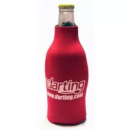 Bottle Koozie with zipper and Darting.com logo printed on exterior. Good grip and keeps your drink cold. It folds flat for easy carrying!