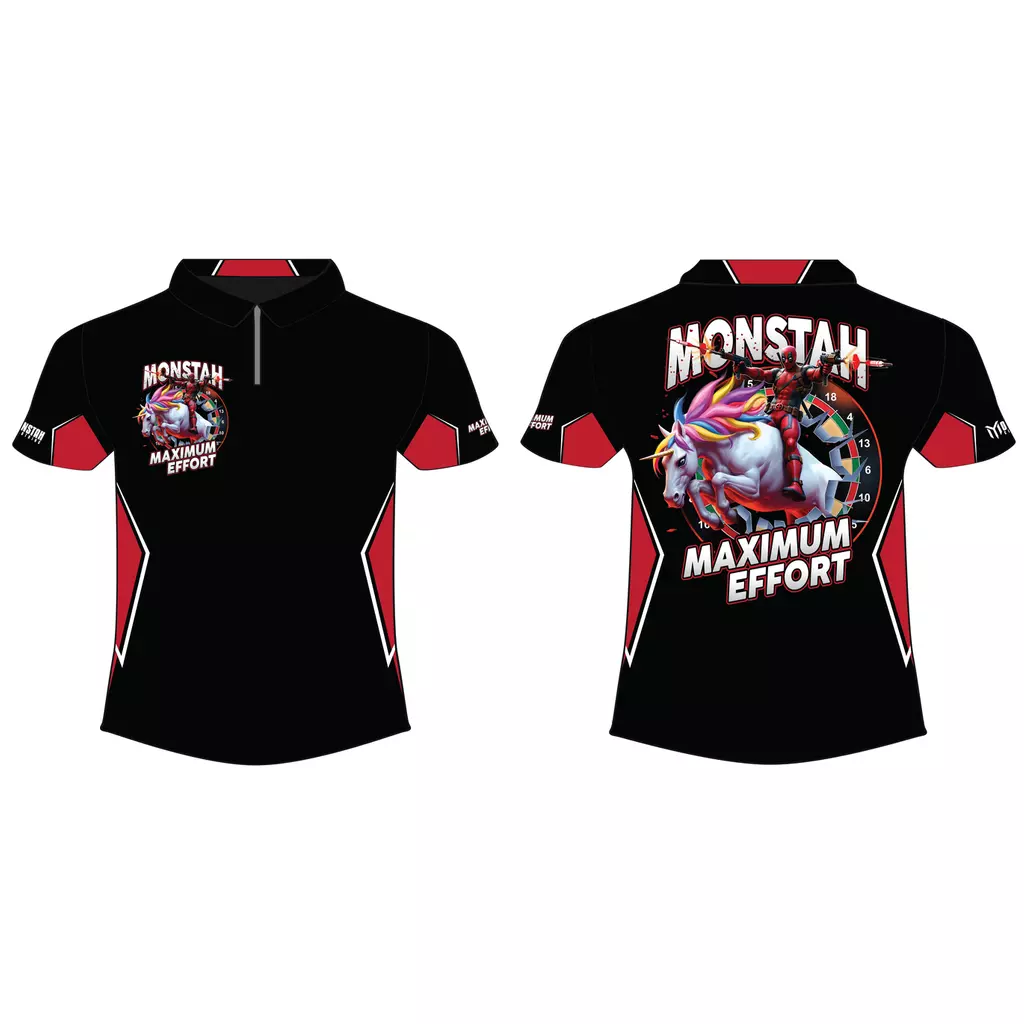 Monstah Maximum Effort jersey with pocket this durable, lightweight jersey is made from breathable fabric for a comfortable fit. You can step up your dart tournament style with this high quality, customized jersey.